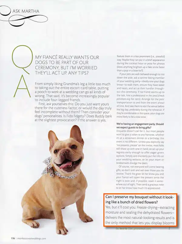 OMG. I almost lost it when I found out the fantastic news! My bridal bouquets are mentioned in the current issue of Martha Stewart Weddings magazine!!!
